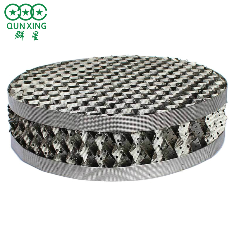 金屬孔板波紋填料具有通量大、阻力些、效率高、抗堵能力強(qiáng)的優(yōu)點。在精餾、吸收、吸取等單元操作中廣泛應(yīng)用。